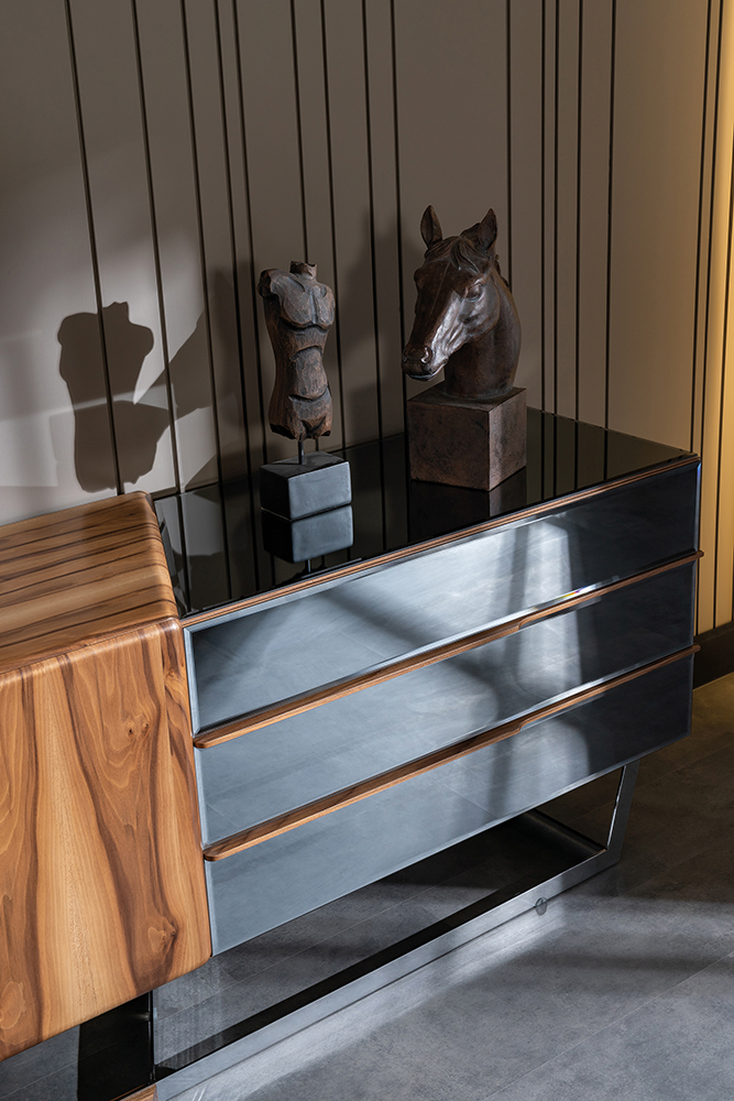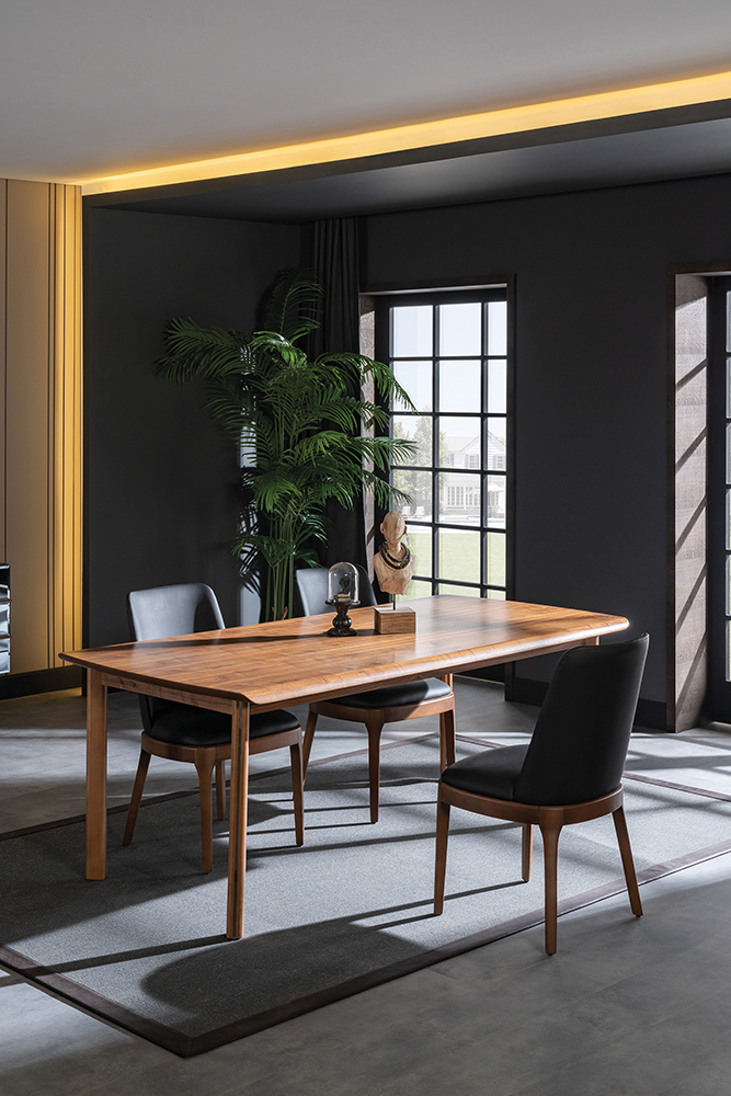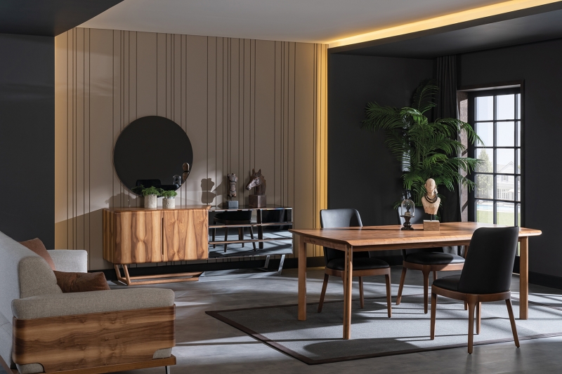 Ceviz ahşap,metal ayak detayları ve füme aynanın güçlü uyumunu yakalayan Dublin Yemek Odası, stilini sakinlikle yansıtmak isteyenler için tasarlandı.